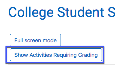 Option 2: If you prefer to use the Open Grader, navigate there, then use the drop-down menu on the right side of the screen to choose the assignment you wish to grade. Then, on the left side of the screen, click the Show Activities requiring Grading button. This will filter the submissions so you'll only see those that remain ungraded.