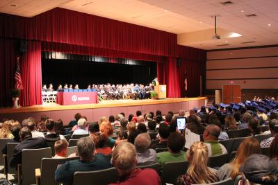 SCC held its spring commencement ceremony on Tuesday, May 7 in the Balsam Center Auditorium on the Jackson Campus. The largest graduating class to date—the 349 graduate candidates included 95 from Career Technologies, 110 from Arts and Sciences and 144 from Health Sciences (23 have double majors including one graduate with a quadruple major). Faculty speaker, Deanne Oppermann, chemistry instructor and the NCCCS Excellence in Teaching Award Recipient, gave an inspiring charge to the graduating students. Thom Brooks, SCC vice president for instruction and student services, recognized honor graduates and Don Tomas, SCC president, conferred degrees.
