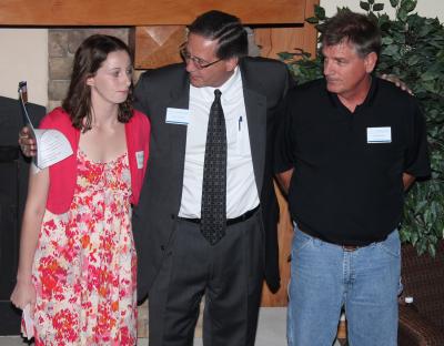 Macon County residents and SCC students Madison Brown, left, and Cliff Burton (right) told community leaders Tuesday night how scholarship assistance from the college’s foundation have helped them get a fresh start at life. Dr. Don Tomas, SCC president, is between Brown and Burton. |