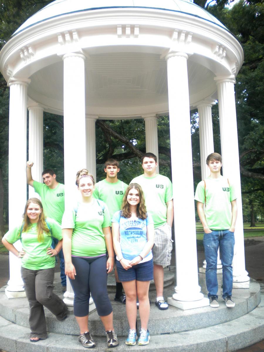 Pictured: Upward Bound current high school seniors on their college tour trip in front of the Old Well at UNC-Chapel Hill