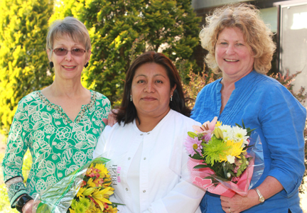 | Edith Jennings (center) recently earned her associate degree in nursing from Southwestern Community College. She is flanked by Judy Comer, SCC’s citizenship instructor, and Kay Wolf, who coordinates Southwestern’s English as a Second Language program. |