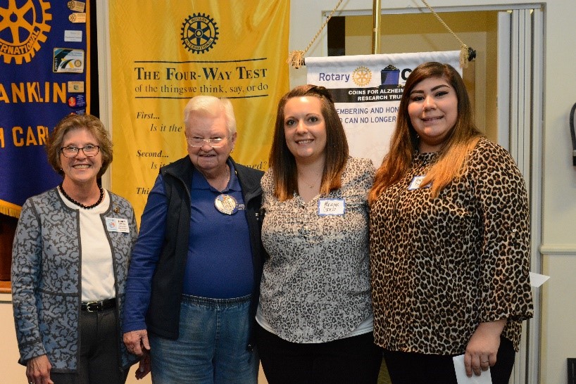 | From left to right: Rotary Club of Franklin President Janet Greene and Rotary member Nancie Wilson are pictured here with SCC students Megan Crisp and Maryanne Davey. |