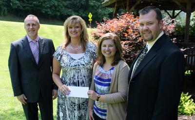 | Maggie Melton (second from right) of Wells Fargo recently presented a $7,700 check to Southwestern Community College to help multiple students attend occupational workforce and economic development programs this fall. SCC officials pictured with Melton are, from left: Dr. Thom Brooks, vice president for instruction and student services; Sonja Haynes, dean of workforce and economic development; and Scott Sutton, director of occupational training. |